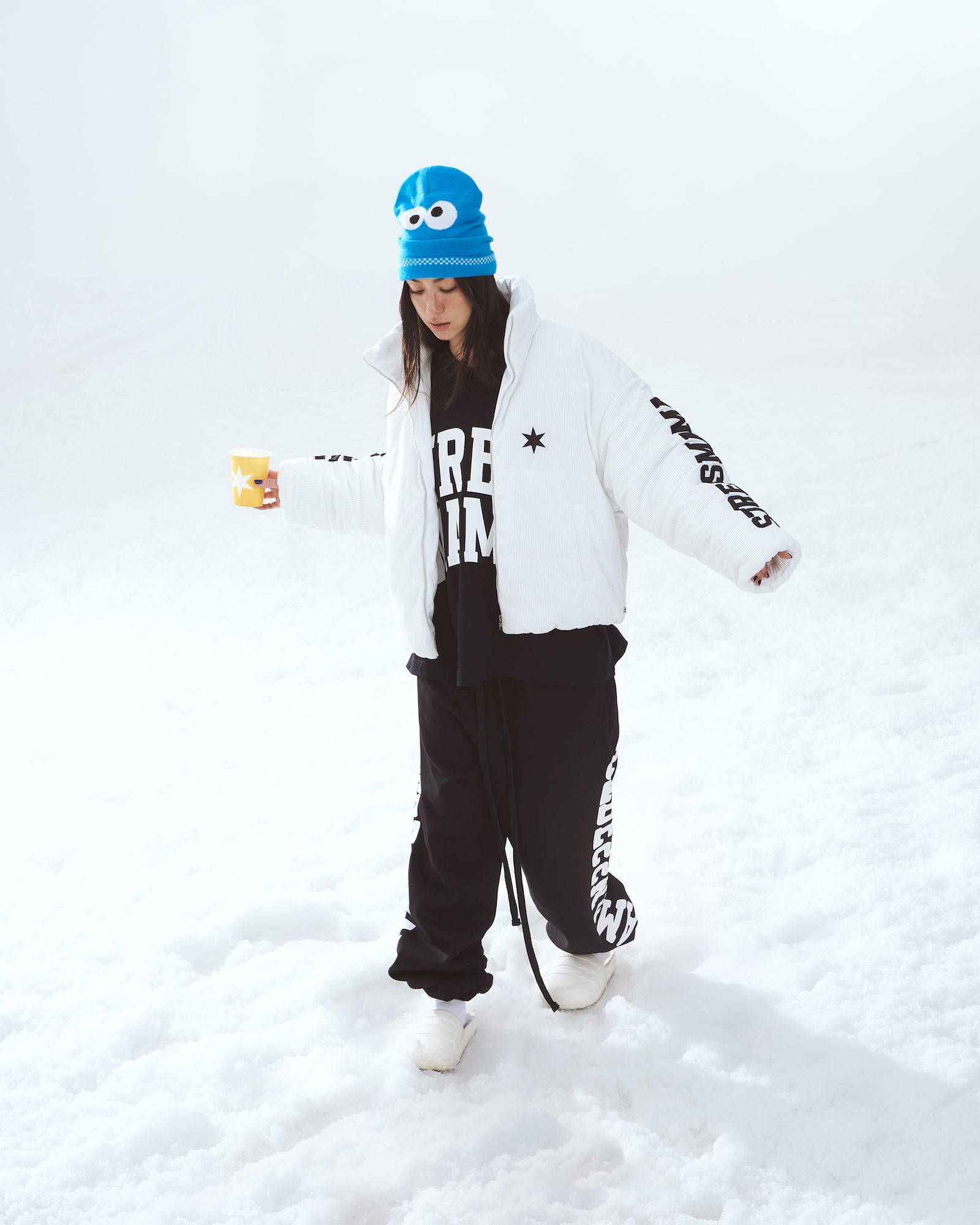 One notable highlight of this collection is the implementation of new materials in classic designs. Examples include a Puffer Hoodie made of Polyester fabric and a puffer jacket crafted from Corduroy material.